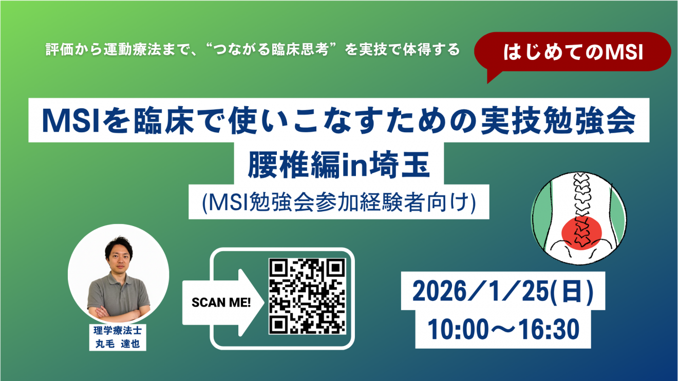 MSIを臨床で使いこなすための実技勉強会 〜腰椎編〜(MSI勉強会参加経験者向け) MSIを臨床で使いこなすための実技勉強会 〜腰椎編〜(MS…