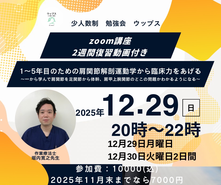 zoom初講座 復習動画付き 1〜5年目のための肩関節解剖運動学から臨床力をあげる zoom初講座 復習動画付き 1〜5年目のための肩関節解剖…
