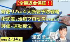 PT・OTのための整形外科術後リハビリテーション再断裂予防戦略~術式差と治癒プロセスを考慮した評価と運動療法~ 講師:瀧田勇二先生 PT・OTのための整形外科術後リハビリテーション再断裂予防…