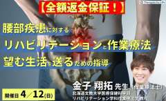 腰部疾患に対するリハビリテーションと作業療法~病態理解から「対象者が望む生活を送る」ための介入~ 講師:金子翔拓先生 腰部疾患に対するリハビリテーションと作業療法~病態理解から…