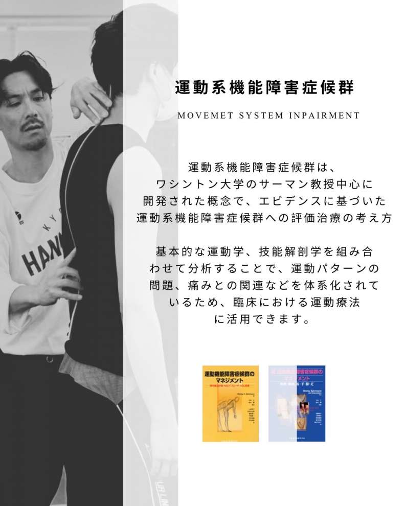 運動系機能障害症候群は、ワシントン大学理学療法士である、サーマン教授を中心に開発された概念でエビデンスに基づいた、運動系機能障害症候群への評価治療の考え方になります。サーマン教授の著書”運動系機能障害症候群のマネージメント”をお読みになった方も多いでしょうが、基本的な運動学、機能解剖学を組み合わせ、分析することで、運動パターンの問題、痛みとの関連などを体系化されているため、臨床における運動療法に活用できます。