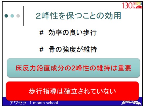 2峰性が即時的に回復する歩行指導等についての講義があります。