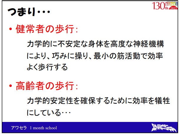 動作(歩行)の言語化(力学的な説明)に、びっくりするでしょう。