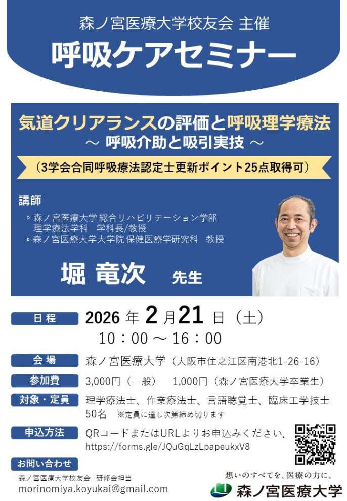 呼吸ケアセミナー『気道クリアランスの評価と呼吸理学療法 〜呼吸介助と吸引実技〜』
