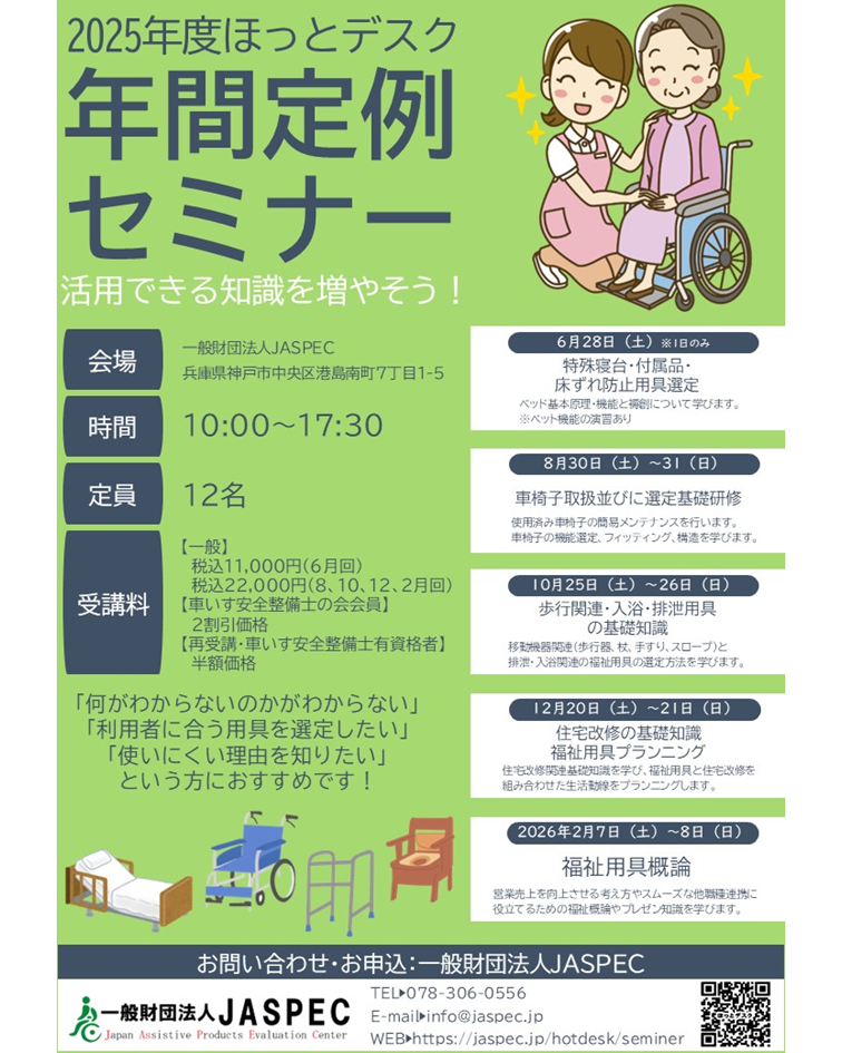 【年間定例】ほっとデスクセミナー(2月開催)福祉用具概論