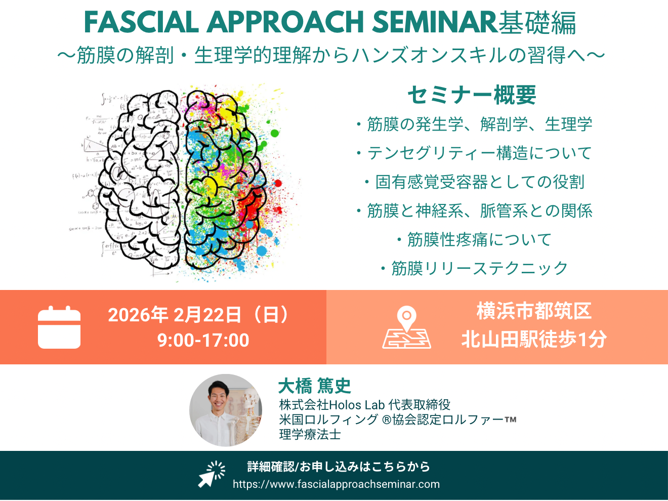 FASの場で、サイエンス的な観点と、ロルフィング的な観点からの筋膜へのアプローチ、理論と感覚の両面のバランスを大切にしながら、筋膜へのワークを学んでいきませんか。
