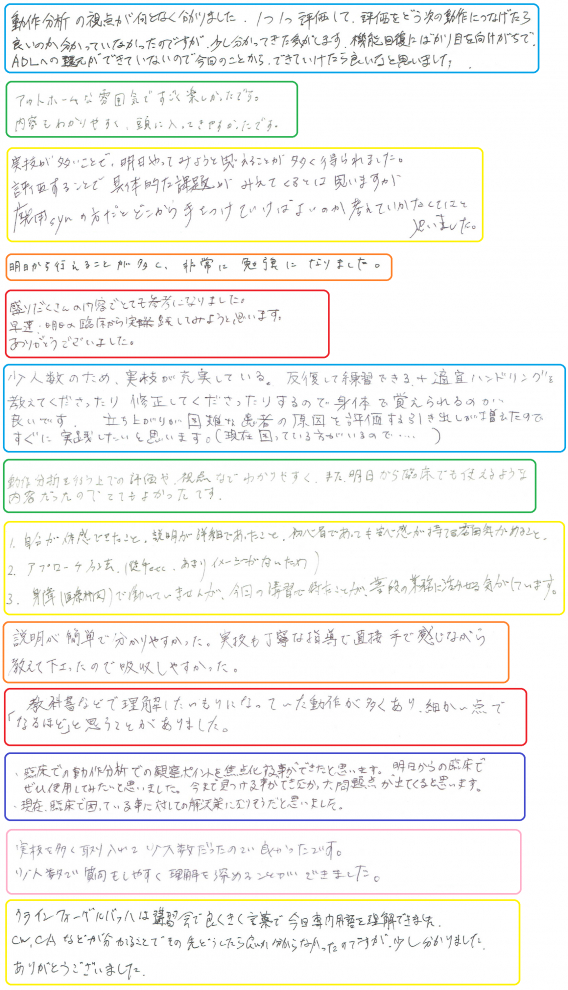 ③明日から実際に、使える評価方法と治療方法の実技を行い、練習して翌日の臨床につなげることができます。