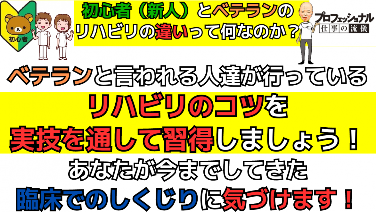 後輩が入職する前に知っておこう!ベテランと言われる人達が、行っているリハビリのコツを具体的に学ぶことができます!