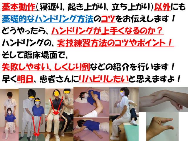 すっごく分かりやすくハンドリングの基礎とコツを学ぼう!リハビリを行う時のハンドリングが明日から出来るようになる!一日かけて、ハンドリングの実技練習を徹底的にやろう!