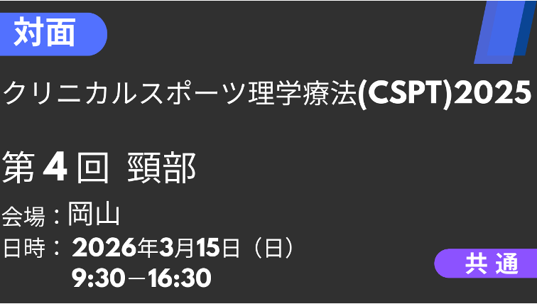 〈クリニカルスポーツ理学療法(CSPT)2025〉岡山会場 -頸部のリアライン‐ 〈クリニカルスポーツ理学療法(CSPT)2025〉岡山会場…