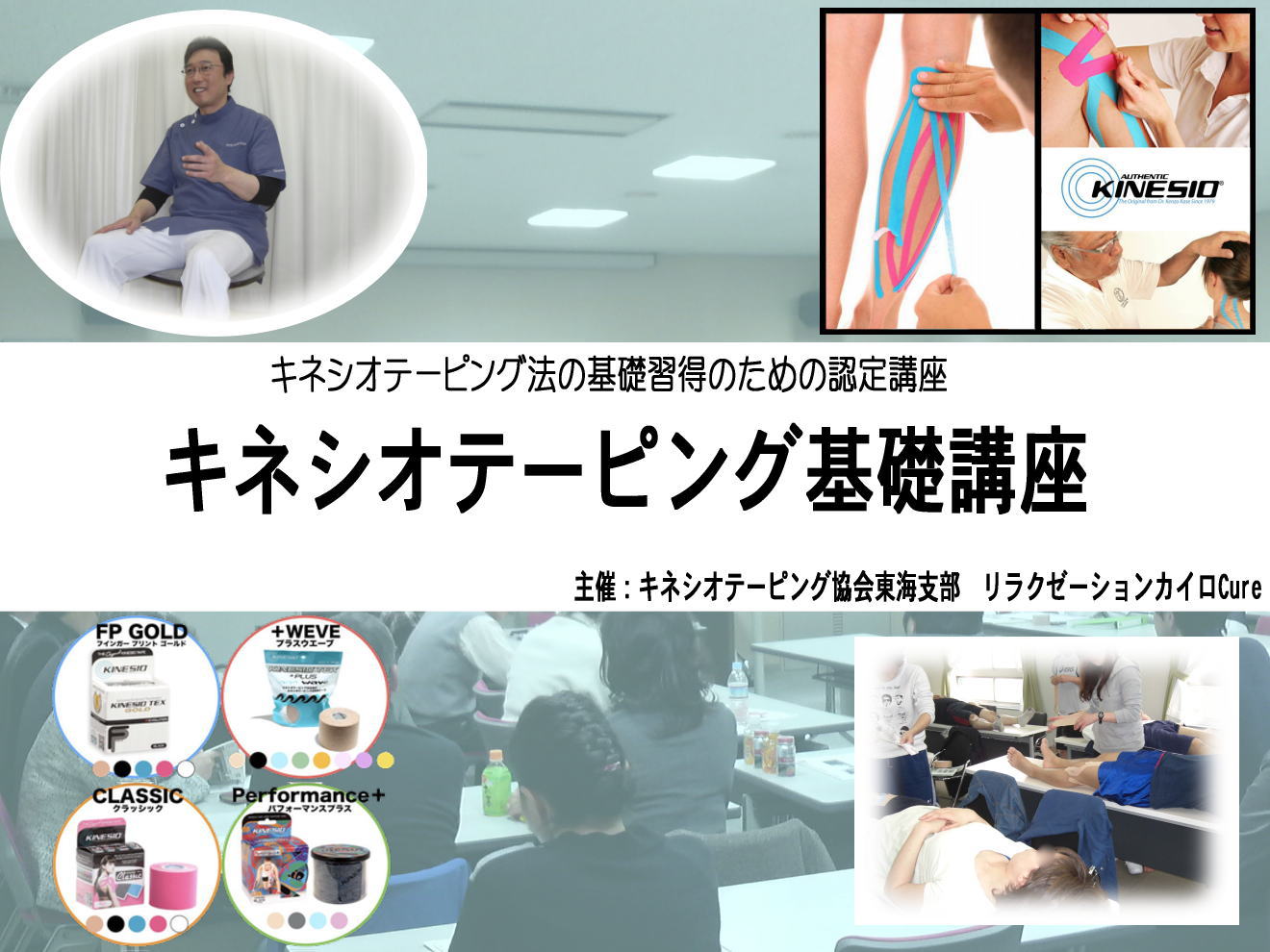 申込先:キネシオテーピング協会東海支部リラクゼーションカイロCure(詳細は協会HPをご参照ください)