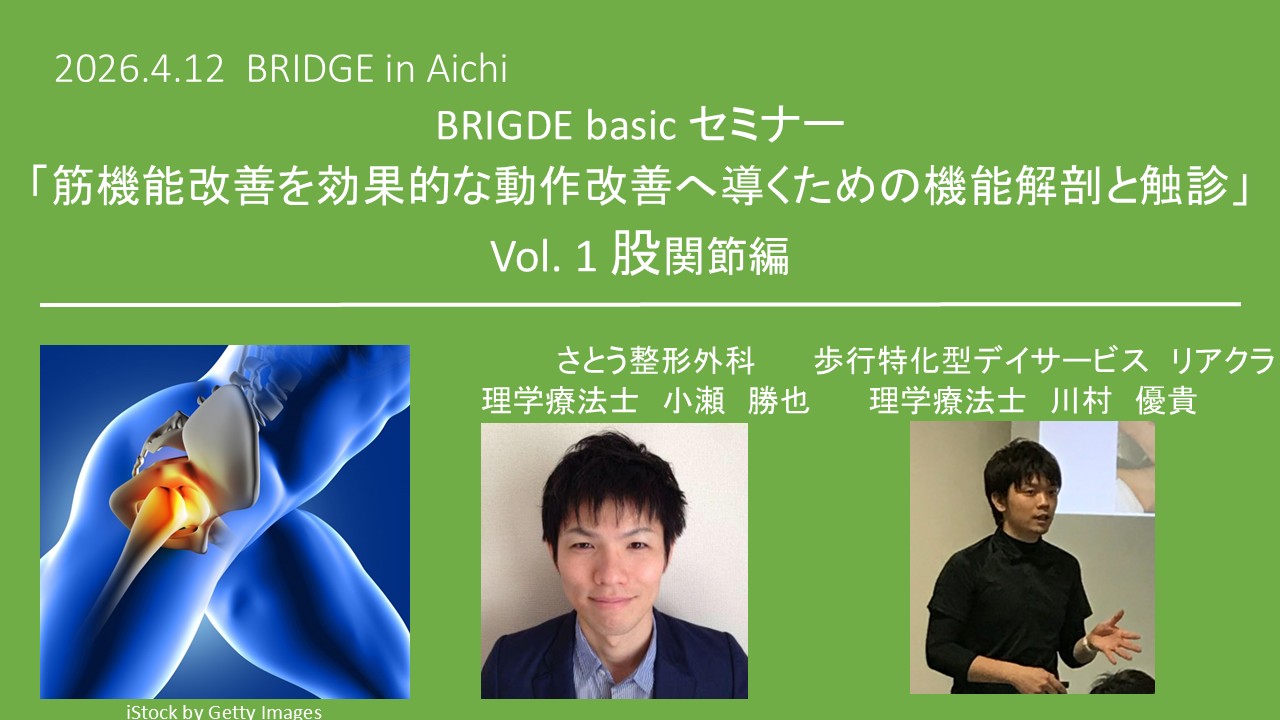 2026/4/12(日)BRIGDE basic セミナー 「筋機能改善を効果的な動作改善へ導くための機能解剖と触診 ~股関節編~」