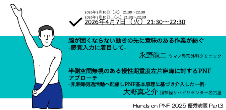 PNFセラピストのよる実際の臨床を垣間見る良い機会になります。ご興味がある方は、是非ご参加ください。