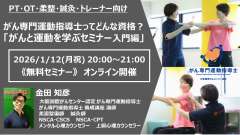 【1/12【無料セミナー】PT・OT・看護・柔整・鍼灸 対象ウェビナー「がん専門運動指導士とはどのような資格?」 【1/12【無料セミナー】PT・OT・看護・柔整・鍼灸 対…