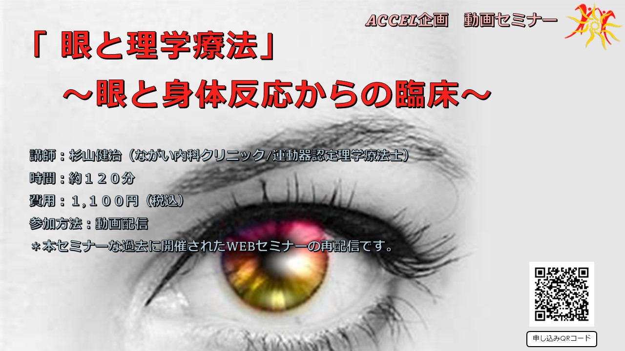 この度、ACCELではR4年2月にオンライン形式で「眼と理学療法」というタイトルで研修会動画を再配信いたします。