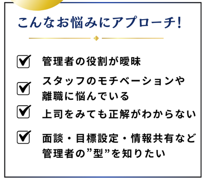 管理者として何を考え、何を見て、どのように行動すればよいのかを、現場目線で分かりやすくお伝えします。