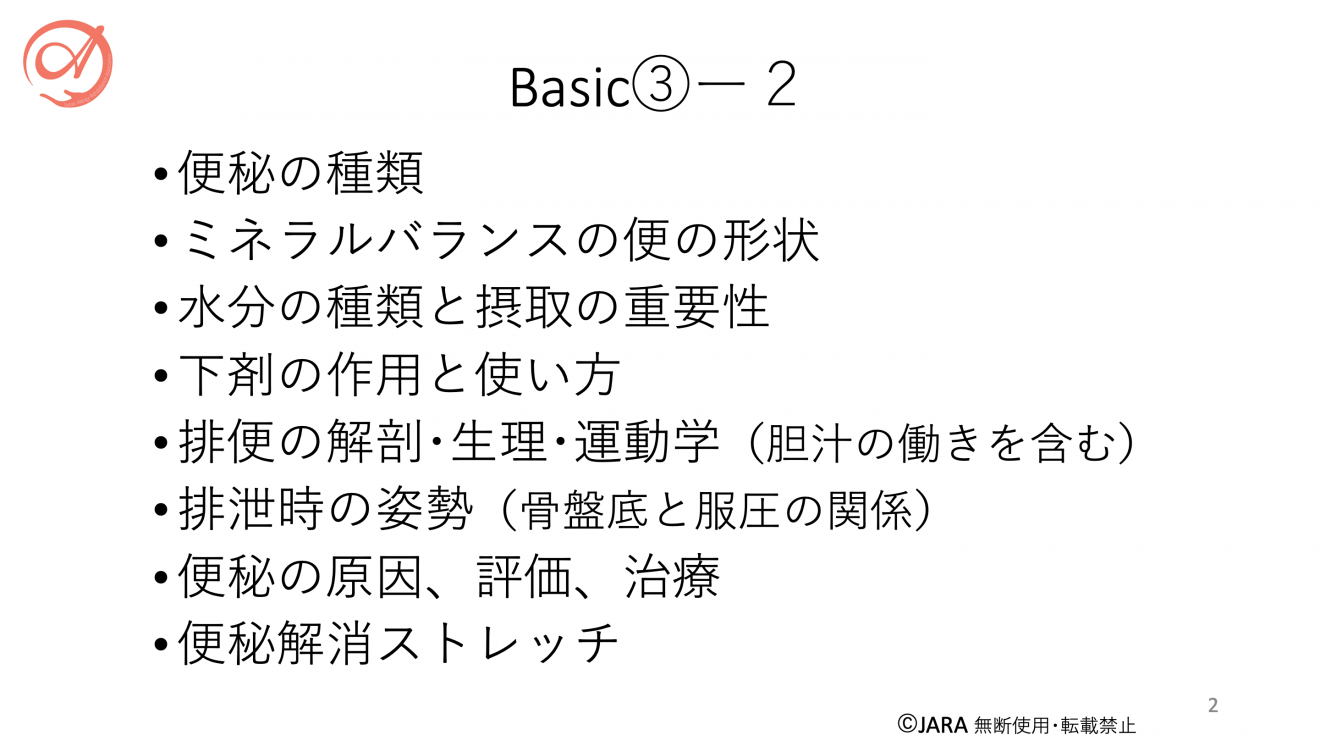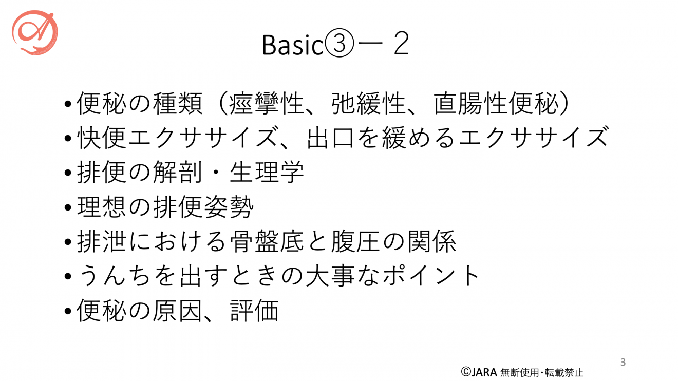 BASIC③-3 [講義]便秘の原因 〜必要な介入と生活習慣〜 (オンライン90分)
