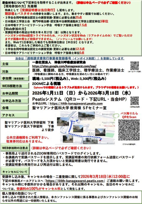 主催 :⼀般社団法⼈ 神奈川呼吸療法研究会 https://sites.google.com/kanagawarst.com/top/