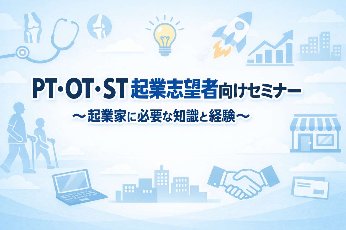 【2025年11月13日に開催しました『PT・OT・ST起業志望者向けセミナー 〜起業家に必要な知識と経験〜』のオンラインセミナーを期間限定にてリピート配信いたします。123分の動画となります。】