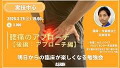 ASRINナイトセミナー腰椎・骨盤帯の「深部」を捉える触診と評価 ASRINナイトセミナー腰椎・骨盤帯の「深部」を捉える触診…