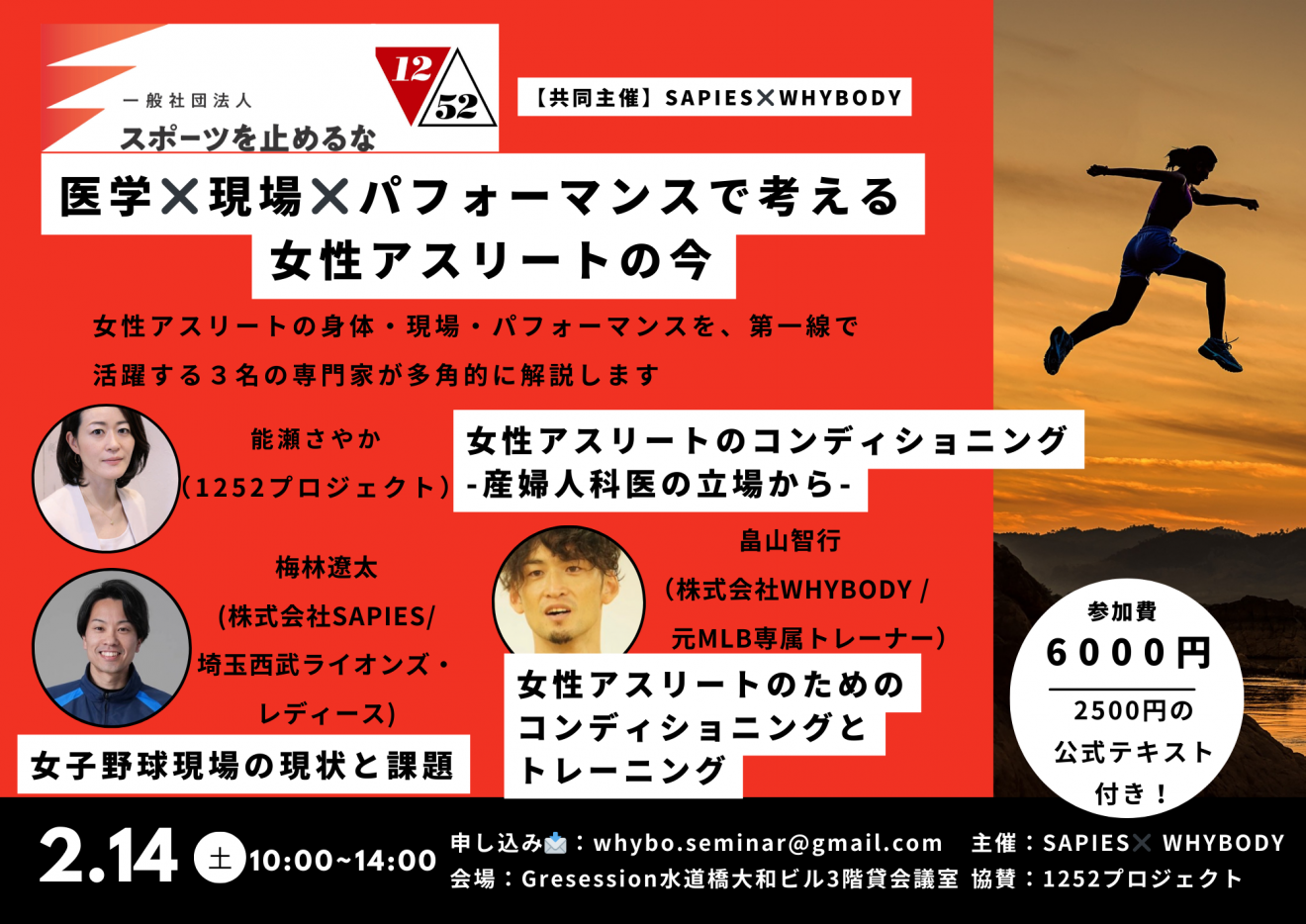 女性アスリートの身体特性・現場での課題・パフォーマンスについて、医療・トレーニング・スポーツ現場、それぞれの最前線で活躍する3名の専門家が多角的に解説するセミナーです。