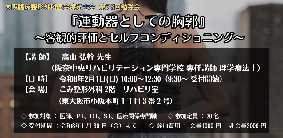 第78回勉強会『運動器としての胸郭』~ 客観的評価とセルフコンディショニング ~