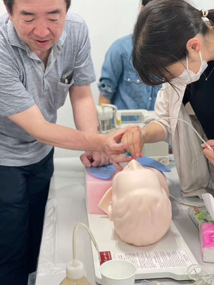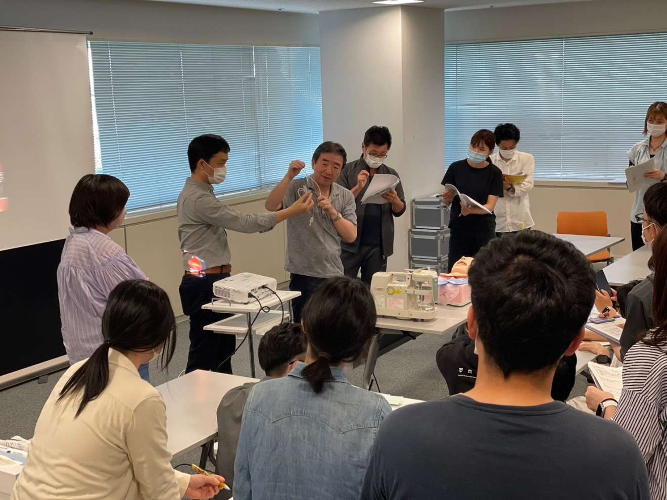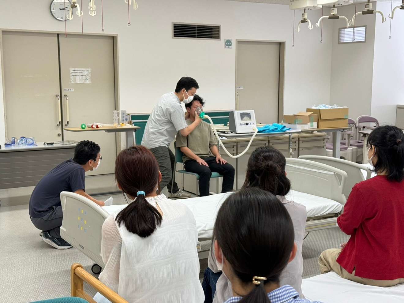 呼吸器学会専門医・指導医の大江元樹先生を中心とした呼吸ケアチームによる、呼吸器系の基礎理解・胸部理学所見のアセスメント・感染管理と吸引操作・吸引以外の排痰援助の実践的な講義・実習です。
