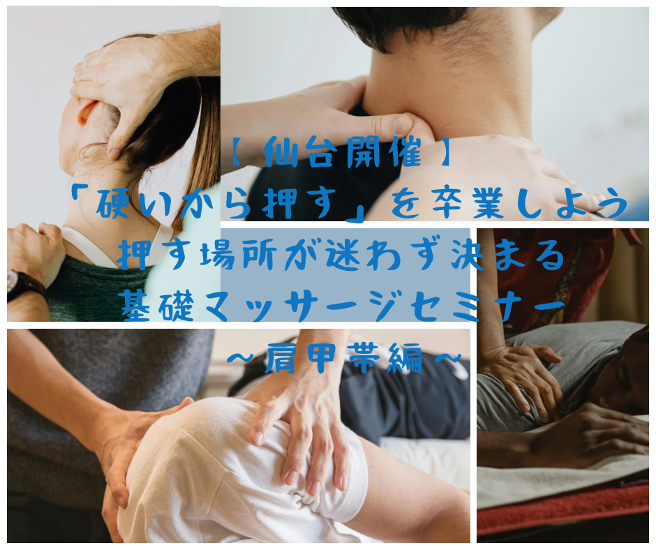 【仙台開催】「硬いから押す」を卒業しよう 押す場所が迷わず決まる基礎マッサージセミナー〜肩甲帯編〜 【仙台開催】「硬いから押す」を卒業しよう 押す場所が迷わず…