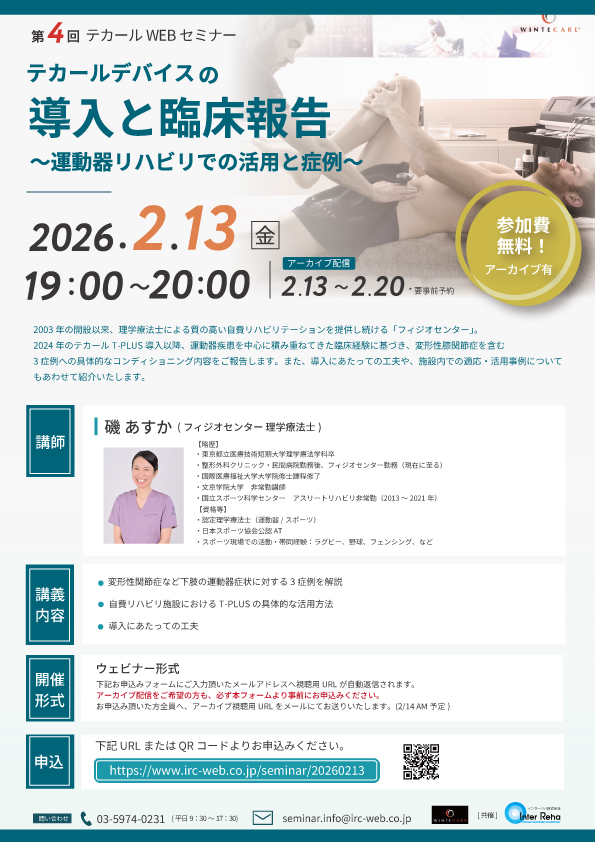 【第4回 テカールWEBセミナー】テカールデバイスの導入と臨床報告 ~運動器リハビリでの活用と症例~
