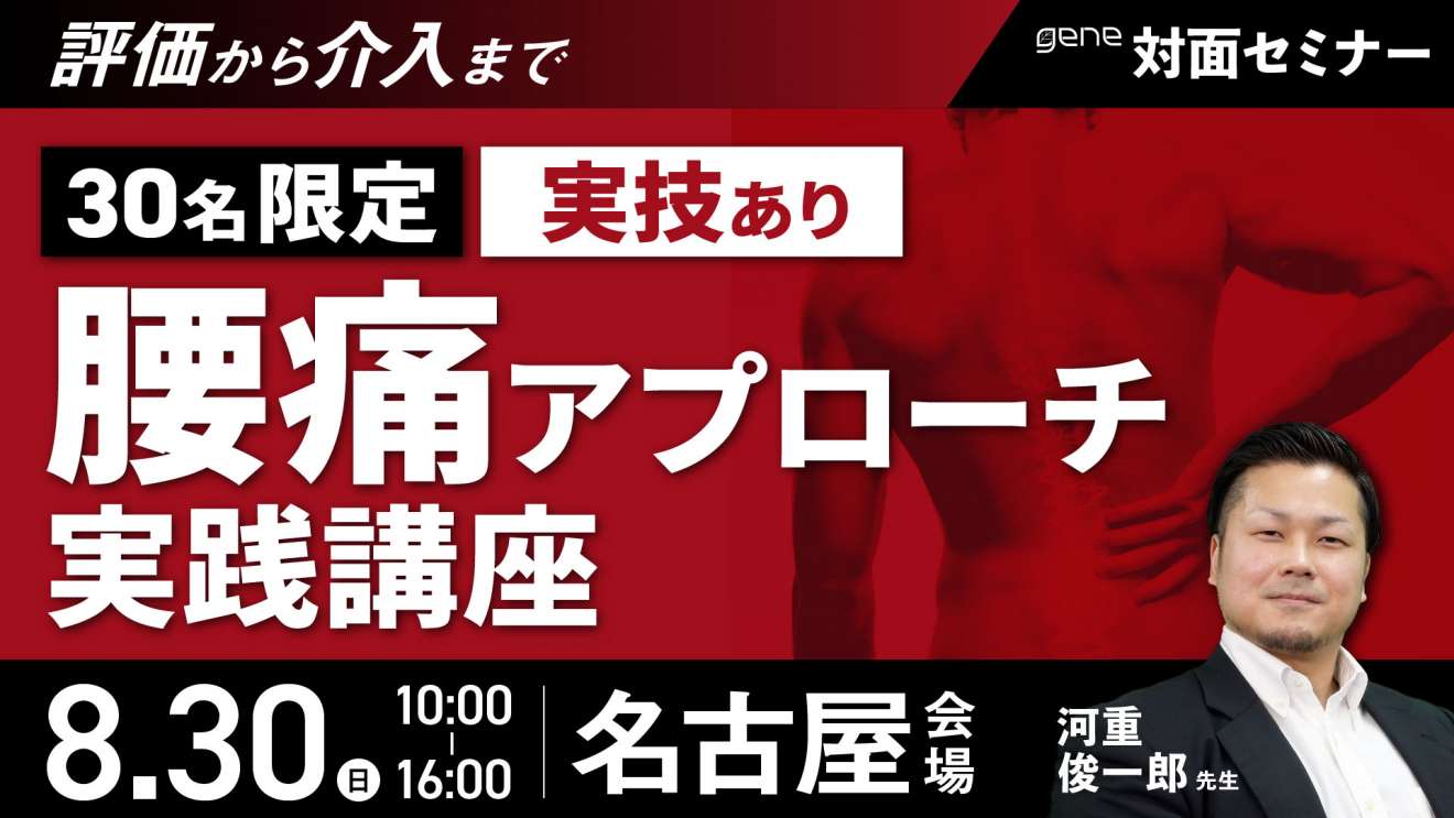 30名限定|評価から介入まで 腰痛アプローチ実践講座~名古屋会場~ 30名限定|評価から介入まで 腰痛アプローチ実践講座~名古…