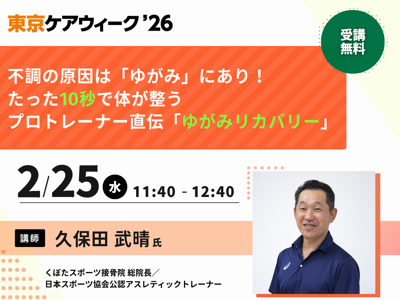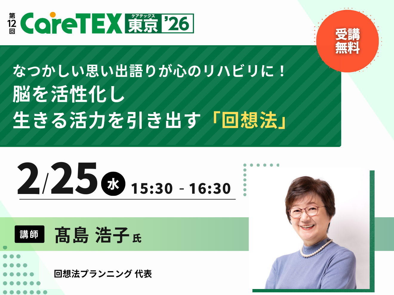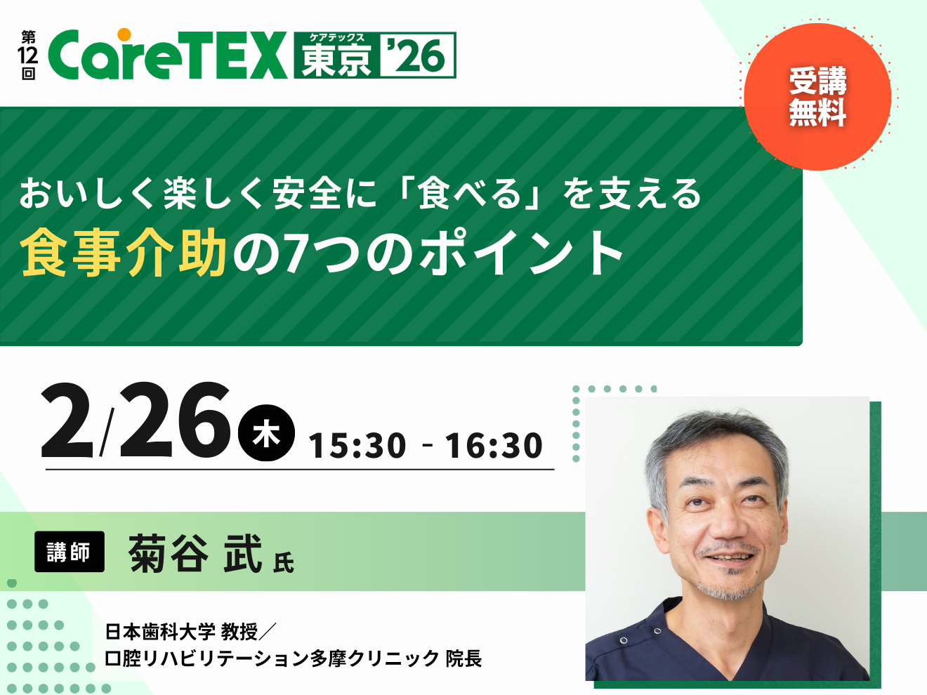 受講料:無料(CareTEX東京’26の来場事前登録とセミナーの事前申込が必要です)