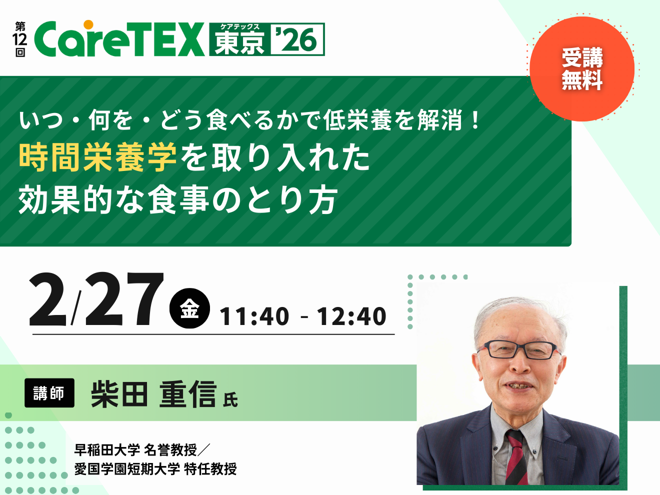 【無料】第12回 CareTEX東京’26 専門セミナー(介護の食コース)