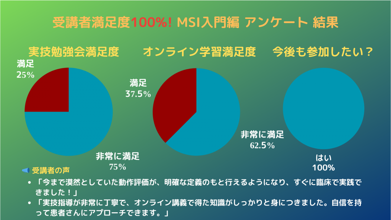 ・動作評価を明確な定義で実践でき、すぐ臨床に活かせた