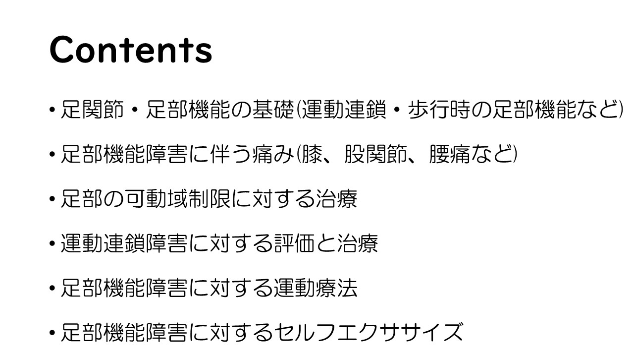 本研修会では疾患特有の機能障害ではなく、足部の機能を理解し個々人の足の状態に適した姿勢制御や運動制御を再構築(モーターコントロールアプローチ)する方法を実技練習を中心に学ぶことが出来ます。