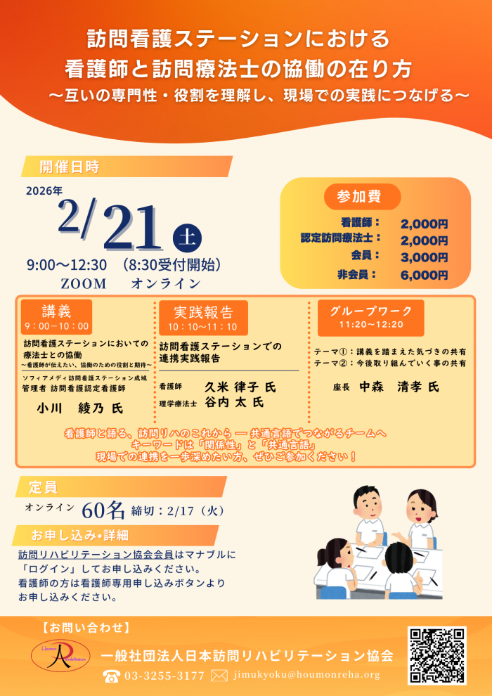 多くの看護師および訪問療法士の皆様のご参加をお待ちしております。