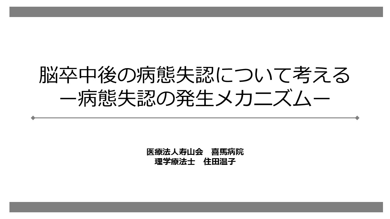 脳血管疾患で生じる病態失認は、ADL改善やリハビリテーションを実施していくうえで大きな障壁になりえる病態です。自身の病態について認識が乏しいため、危険行動が頻発されたり、リハビリ拒否などにつながることがあります。そのため、なかなかうまく改善が進まない経験をお持ちの方も多いのではないでしょうか。本動画では、病態失認はどのようなエラーで生じているのか、どのような評価で判断し、治療に活かすか、について解説しています。