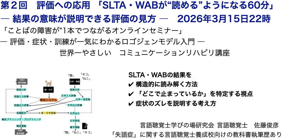 第2回|評価 SLTA・WABの読み解き ????どこで止まっているかを特定 https://peatix.com/event/4889019