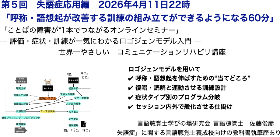 第5回|失語症応用 呼称・語想起・復唱・読解 ????効く訓練を設計 https://peatix.com/event/4889097