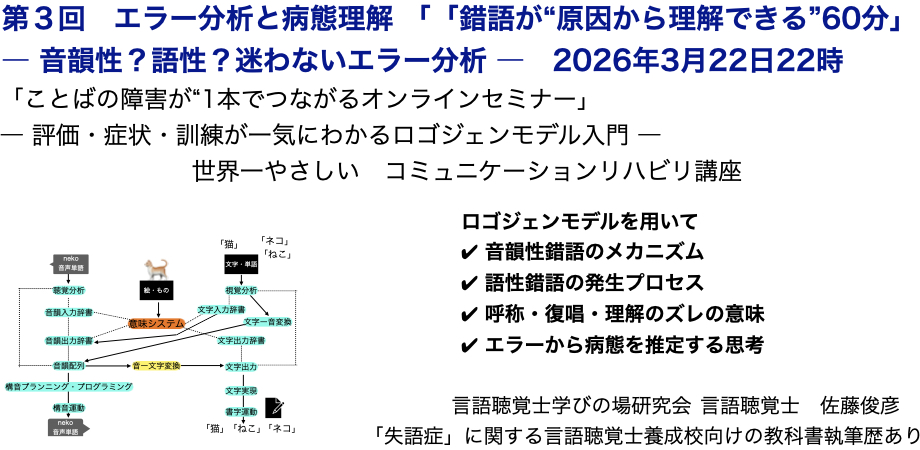第3回|エラー分析 音韻性錯語・語性錯語 ????エラーから病態を理解 https://peatix.com/event/4889039