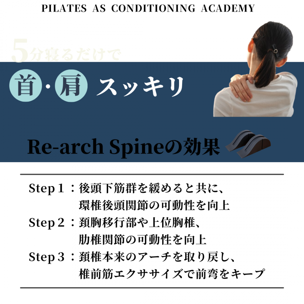 当日は実技を中心に、評価方法や、ストレートネック&フォワードヘッド、猫背の改善の為のエクササイズを、「Re-arch Spine:リアーチスパイン」というツールを使い、お伝えいたします。
