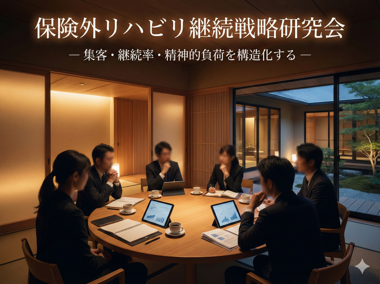本研究会では、保険外リハビリに携わるセラピストが集まり、これらの課題について率直に意見交換を行います。