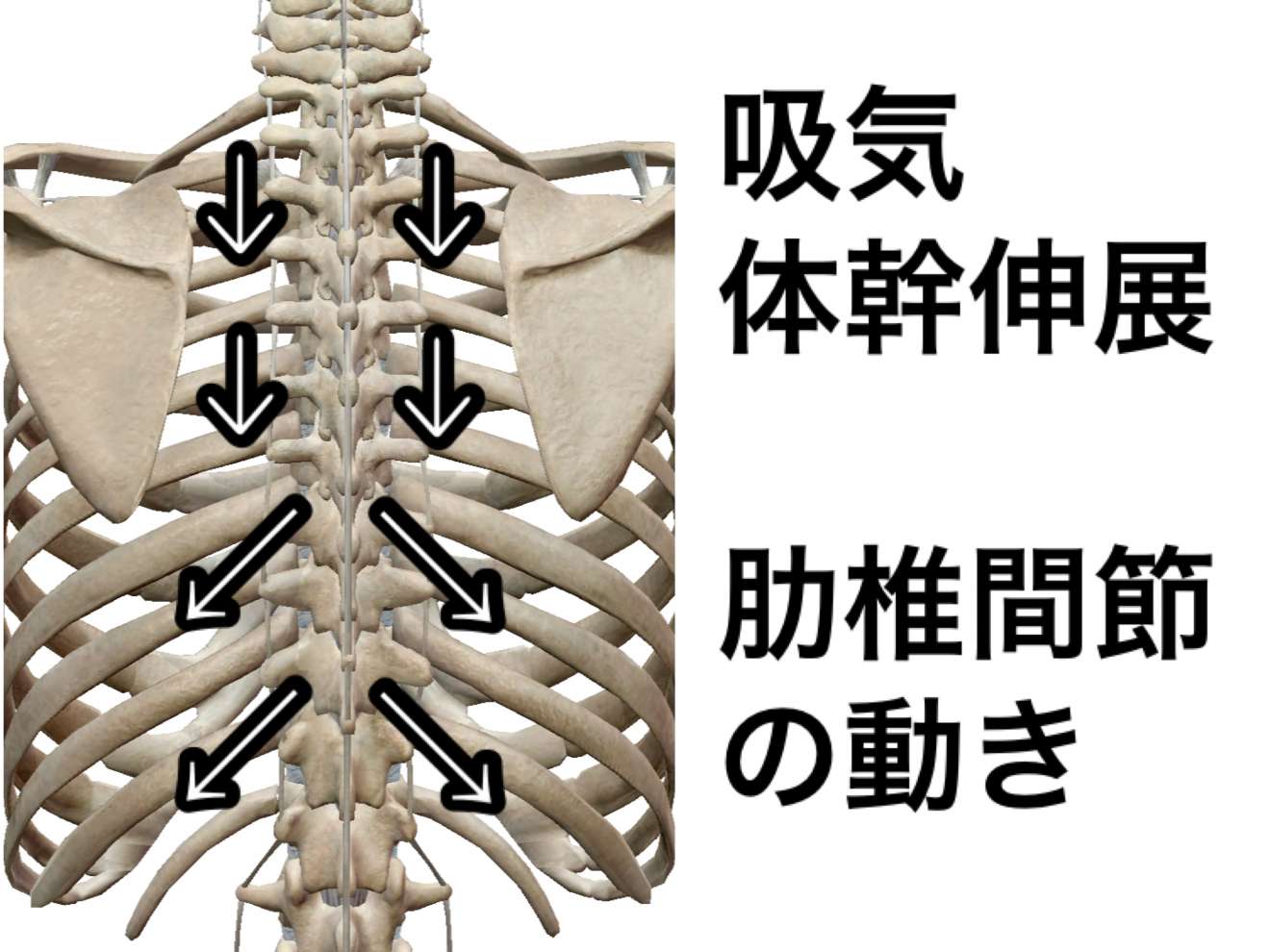 臨床では巻肩姿勢で胸郭を丸くして使っていることで頸部痛や腰痛などの原因となるケース、長時間座位姿勢で体幹筋力低下してしまい肋骨動作が異常を起こしていることなどがあります。胸郭は評価方法が難しく、確立されたものもないため見逃してしまいますが、体幹を安定させ流ためには運動器として非常に重要な部位です。