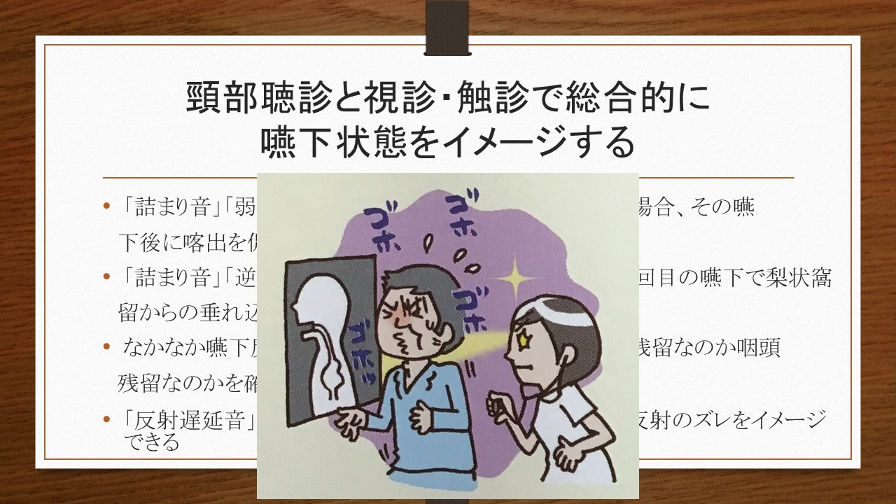 ●頸部聴診と視診・触診で総合的に嚥下状態をイメージする