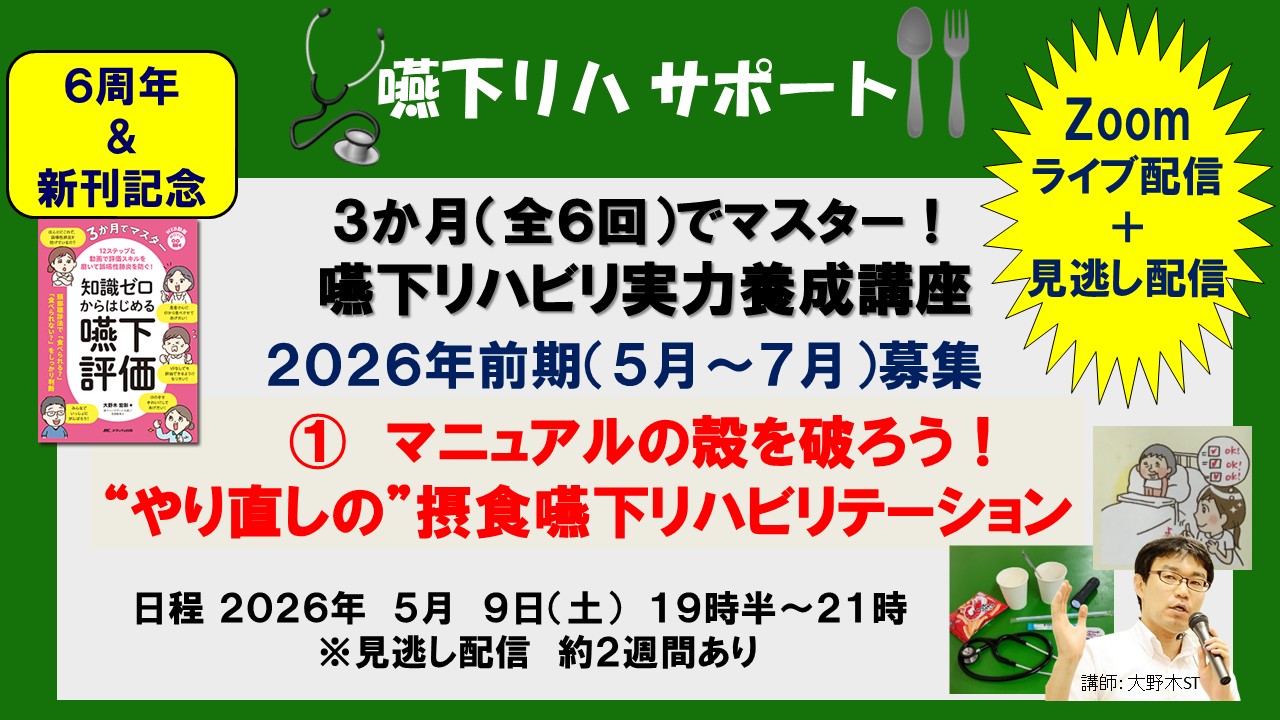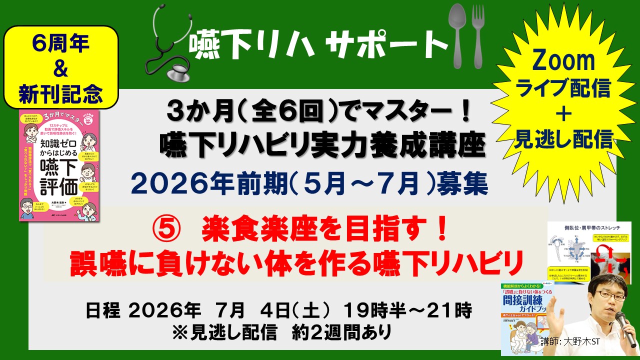 【3か月(全6回)でマスター! 嚥下リハビリ実力養成講座】➄楽食楽座を目指す! 誤嚥に負けない体を作る嚥下リハビリ