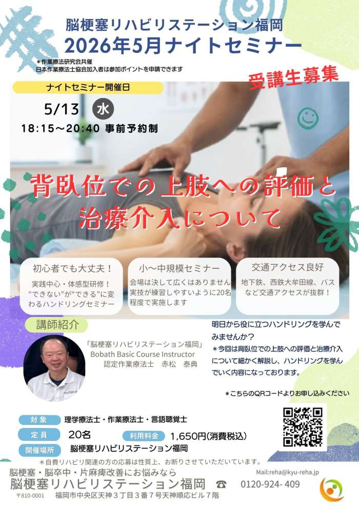 背臥位での上肢への評価と治療介入について ナイトセミナー(ハンドリング研修会)