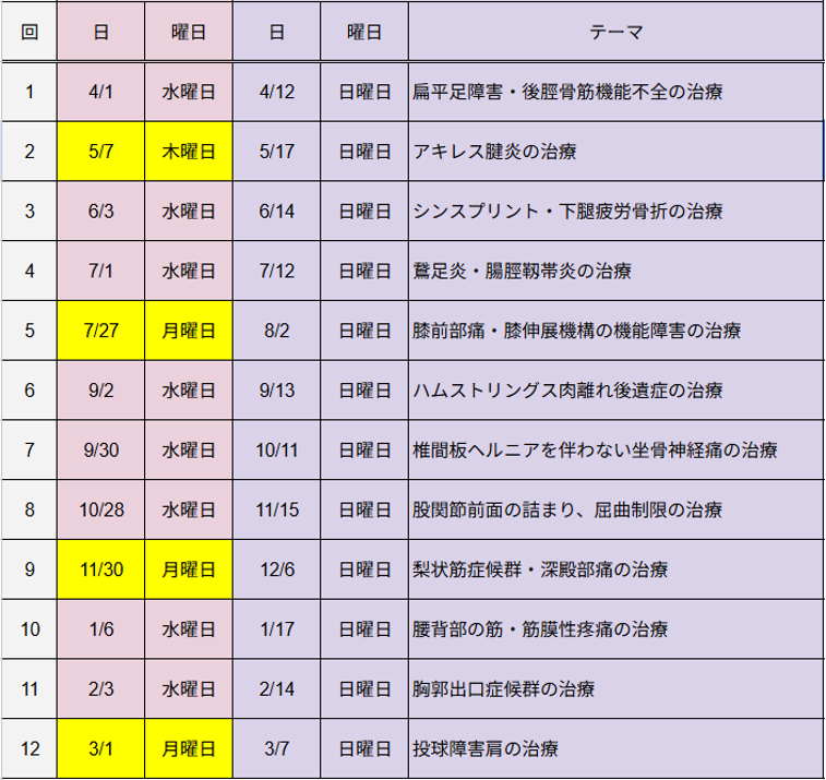 2026年04月11日スタート クリニカルスポーツ理学療法2026〈東京〉全12回セット