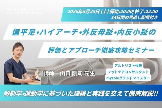 2026年5月23日(土)偏平足・ハイアーチ・外反母趾・内反小趾の評価とアプローチ徹底攻略セミナー(14日間の見逃し配信付き) 2026年5月23日(土)偏平足・ハイアーチ・外反母趾・内…