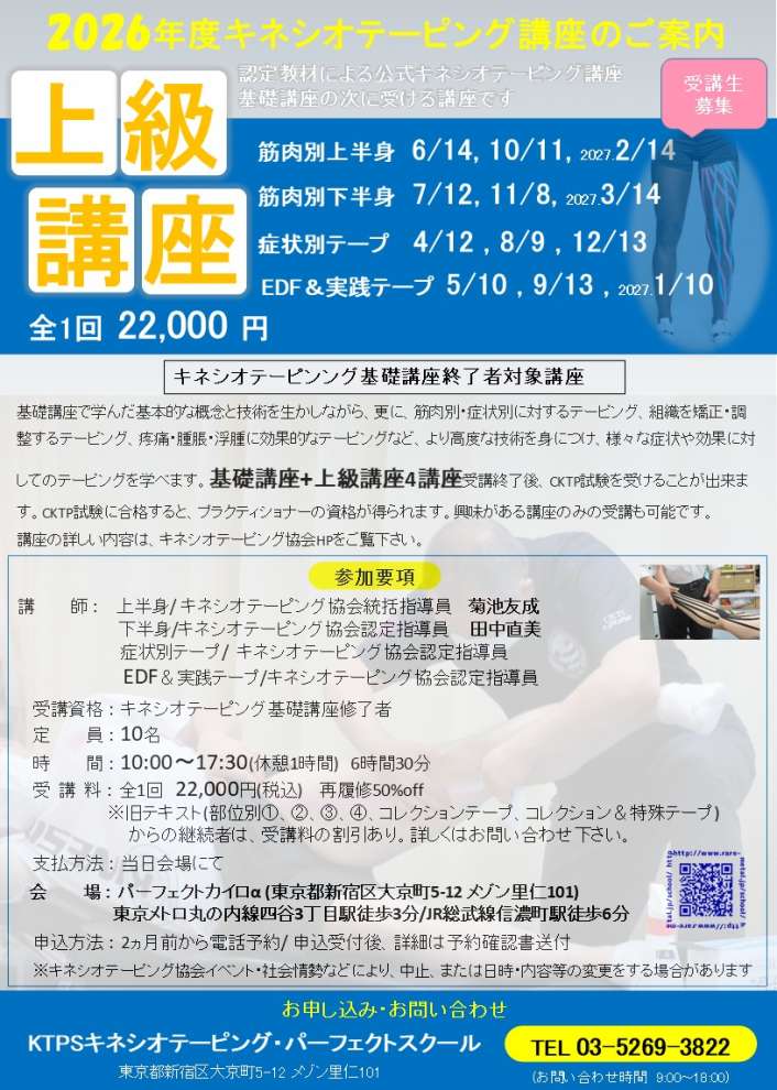 申込先:KTPS キネシオテーピングパーフェクトスクール セミナー係