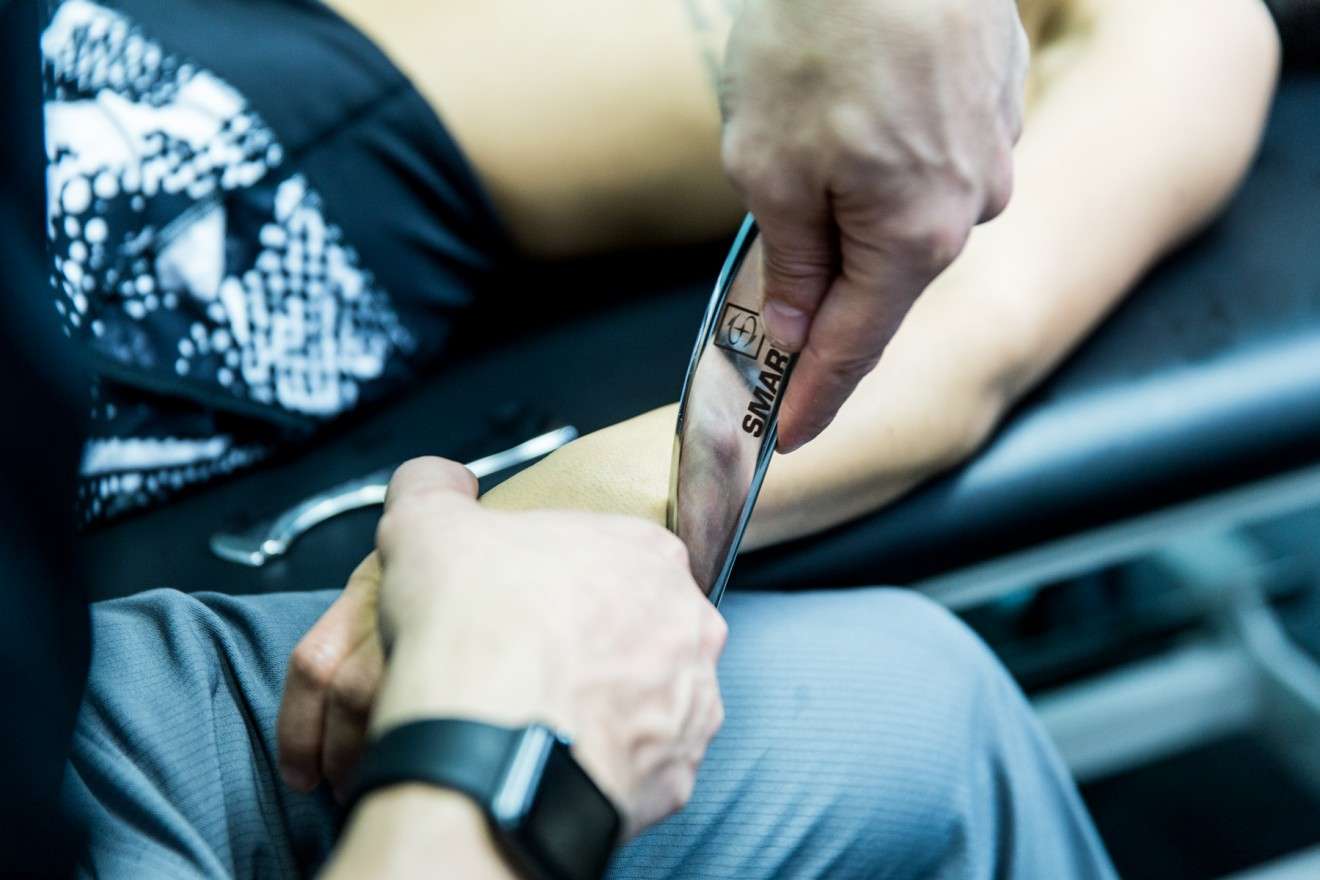 STM4 “SCANNER”STM2によく似たこのツールは、背中、前腕、頚部、下腿、胸筋のような小〜中範囲向けにデザインされています。 こちらは片刃で、組織の検査時に最適な感受性とフィードバックを与えます。臨床家の中には、こちらをより好まれる方もいます。