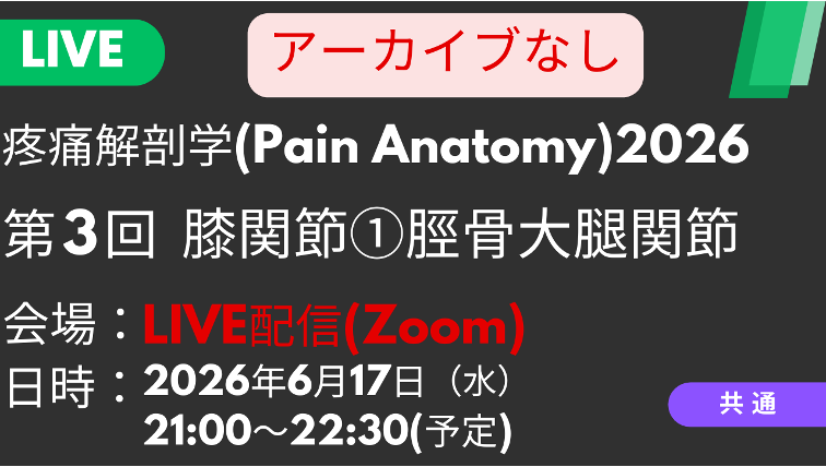 疼痛解剖学2026〈LIVE配信〉膝関節:脛骨大腿関節周囲の神経触診 疼痛解剖学2026〈LIVE配信〉膝関節:脛骨大腿関節周囲…